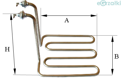 Grzałki elektryczne przeznaczone do pracy we frytkownicach, do zanurzenia w oleju. Element grzewczy wygięty w kształt litery M. Mocowanie tulejami gwintowanymi (w komplecie nakrętki, podkładki).