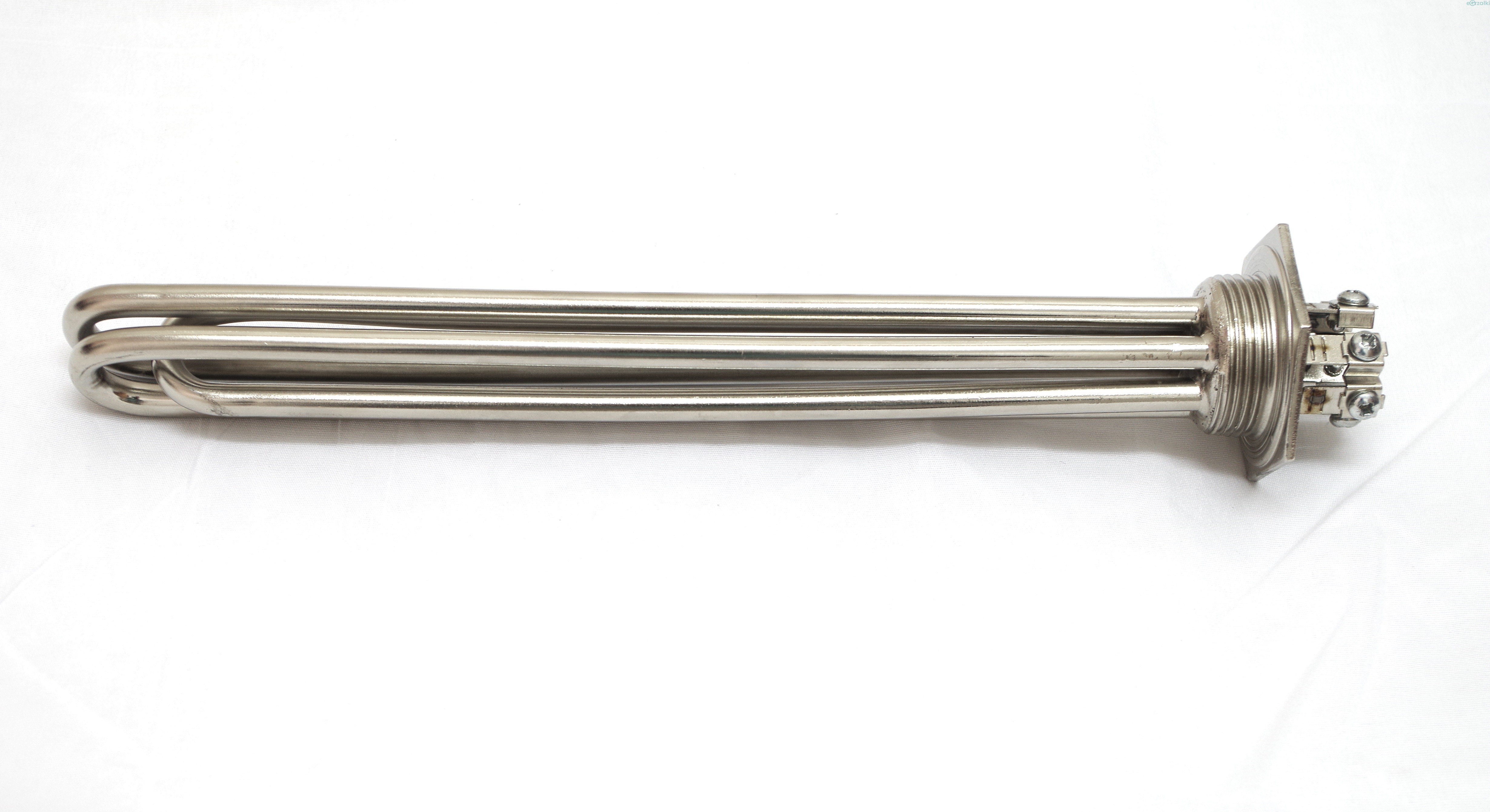 Grzałka do wytwornicy pary zbudowana jest z trzech rurkowych elementów typu U, wlutowanych w calowy korek. Płaszcz rurkowej grzałki elektrycznej wykonany z miedzi pokrytej powłoką niklową.