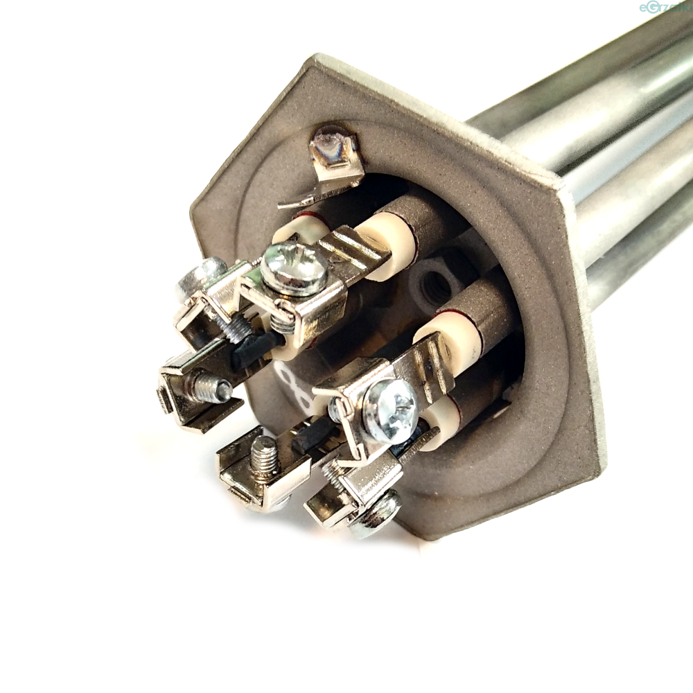 Grzałka do wytwornicy pary zbudowana jest z trzech rurkowych elementów typu U, wlutowanych w calowy korek. Płaszcz rurkowej grzałki elektrycznej wykonany z stali nierdzewnej.
