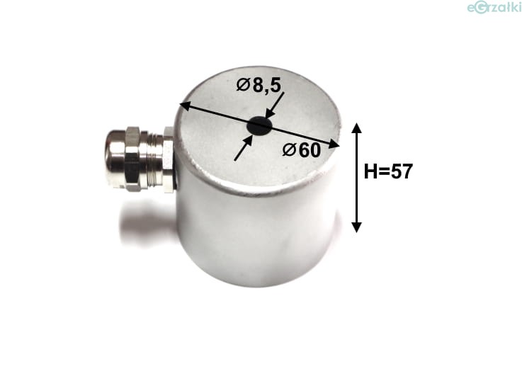 Osłona nierdzewna z centralnym otworem do przykręcenia, wyposażona w mosiężny/niklowany dławik kablowy PG13,5.