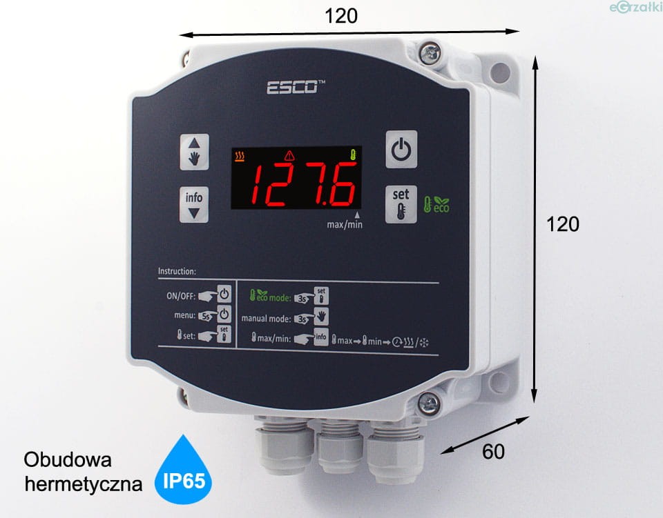 Regulator posiada cyfrowy odczyt temperatury oraz funkcję kalibracji wskazań.