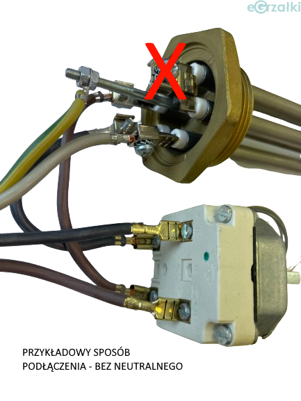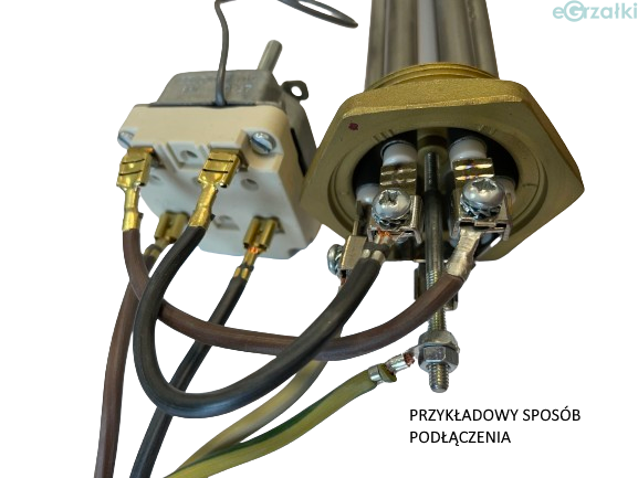 Termostat posiada możliwość podłączenia dwóch faz (dwie pary styków), natomiast trzecią fazę należy podłączyć bezpośrednio do grzałki.